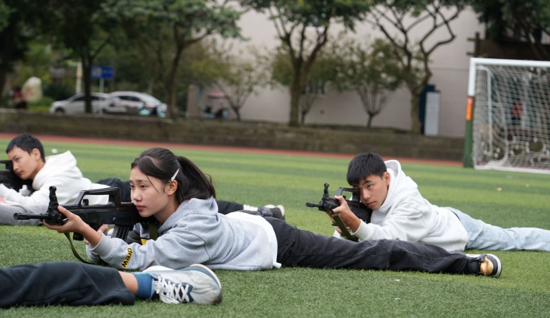 上午9:30,国歌奏响,五星红旗冉冉升起,全体人员肃立致敬,仪式正式启动。军训总教官向校领导报告就绪后,汇报展示逐一展开。手语操展示,同学们动作整齐划一,神情专注认真,用灵动的手势传递着青春正能量,展现出刚柔并济的精神风貌;队列展示中,展示方队步伐铿锵、口号嘹亮,摆臂、踢腿等动作标准规范,充分彰显了军训期间的扎实训练成果;擒敌拳与军体拳展示更是将现场气氛推向高潮,学子们出拳有力、呐喊震天,招式刚劲利落,尽显少年意气与军人风范,赢得了在场师生的阵阵掌声;内务展示,叠被如切豆腐块,方正平整、棱角分明,一床床整齐划一的军被操场陈列;战术与战场救护展示,参训学生动作娴熟、配合默契,模拟战场环境下的应急处置流程,展现了过硬的应急处置能力与团队协作精神。