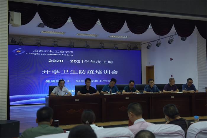 成都石化工业学校全体教职工2020年秋季开学工作会8月28日上午在南校区学术厅举行,会上进行了2020年秋季开学校园安全及传染病疫情防控知识专题培训。