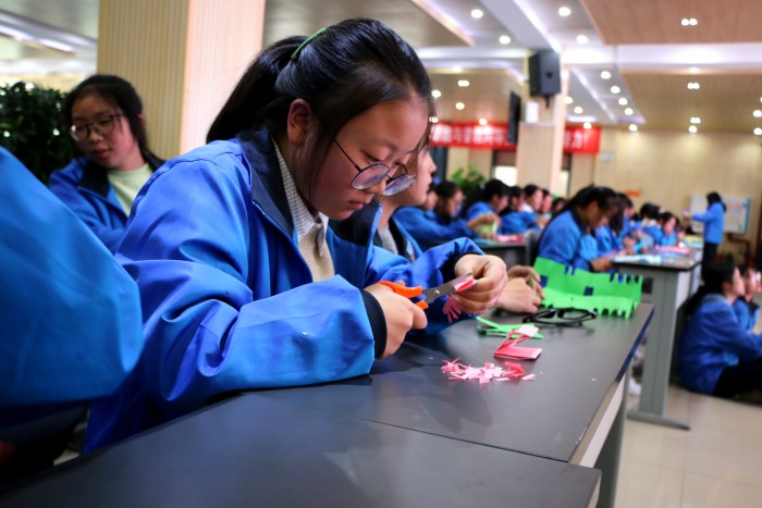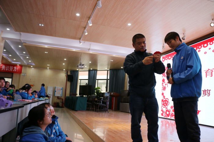 日前,成都石化工业学校积极拓展劳动教育讲堂,邀请到中国民间文艺家协会会员、四川省民间文艺家协会会员、四川省工艺美术行业协会会员、彭州市非物质文化遗产保护协会副会长、彭州市人民对外友好协会常务理事、彭州市非物质文化遗产剪纸和剪影传承人——庄丛灿到校为学前信息科学生举办剪纸专题讲座。