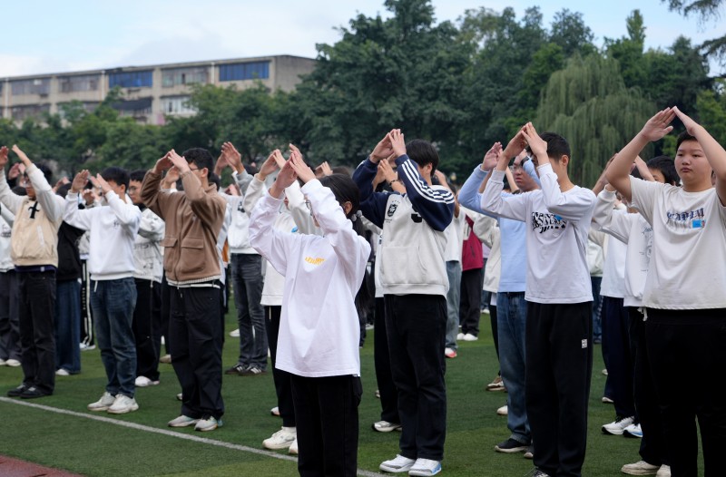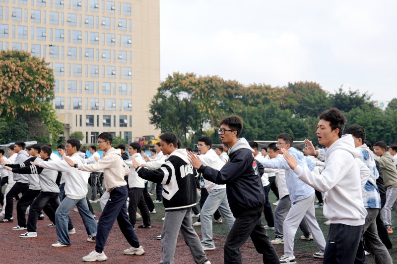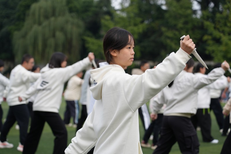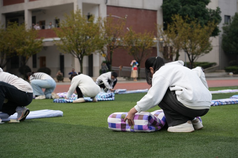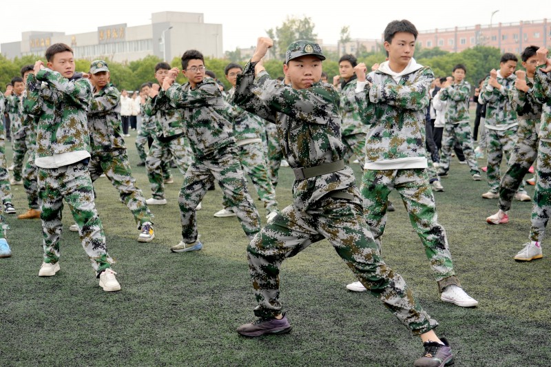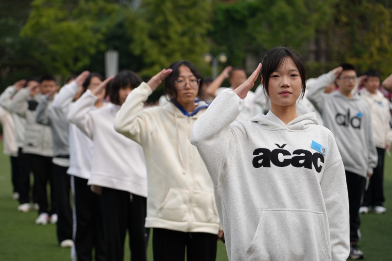 上午9:30,国歌奏响,五星红旗冉冉升起,全体人员肃立致敬,仪式正式启动。军训总教官向校领导报告就绪后,汇报展示逐一展开。手语操展示,同学们动作整齐划一,神情专注认真,用灵动的手势传递着青春正能量,展现出刚柔并济的精神风貌;队列展示中,展示方队步伐铿锵、口号嘹亮,摆臂、踢腿等动作标准规范,充分彰显了军训期间的扎实训练成果;擒敌拳与军体拳展示更是将现场气氛推向高潮,学子们出拳有力、呐喊震天,招式刚劲利落,尽显少年意气与军人风范,赢得了在场师生的阵阵掌声;内务展示,叠被如切豆腐块,方正平整、棱角分明,一床床整齐划一的军被操场陈列;战术与战场救护展示,参训学生动作娴熟、配合默契,模拟战场环境下的应急处置流程,展现了过硬的应急处置能力与团队协作精神。