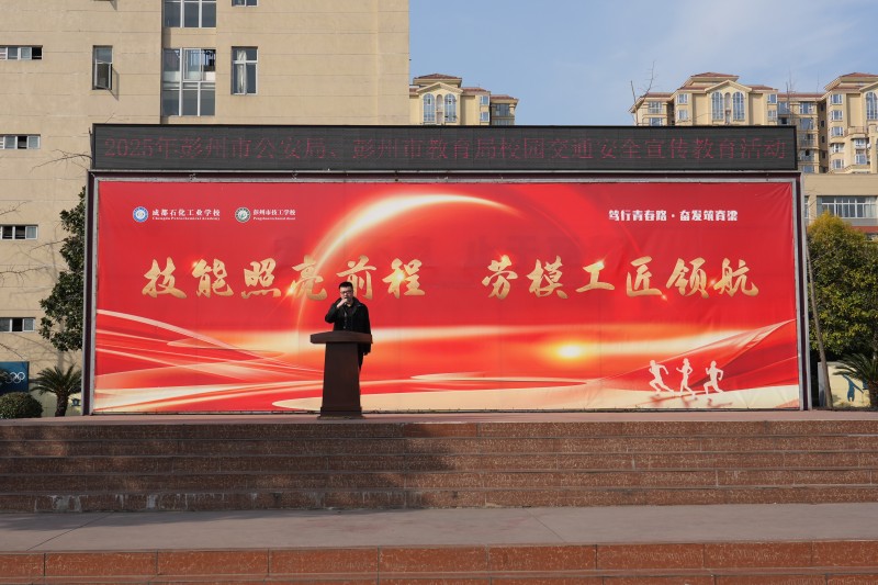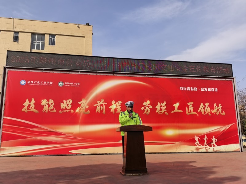 12月25日上午,成都石化工业学校(彭州市技工学校)一场干货满满的校园交通安全宣传教育活动正在火热开展。彭州市公安局交通管理大队副大队长甲乓、彭州市教育局应急管理科谢全伦老师走进校园,以“警示教育+专项宣讲”的真实案例敲响安全警钟,为全校学子送上了一份特殊的“安全大礼”。
