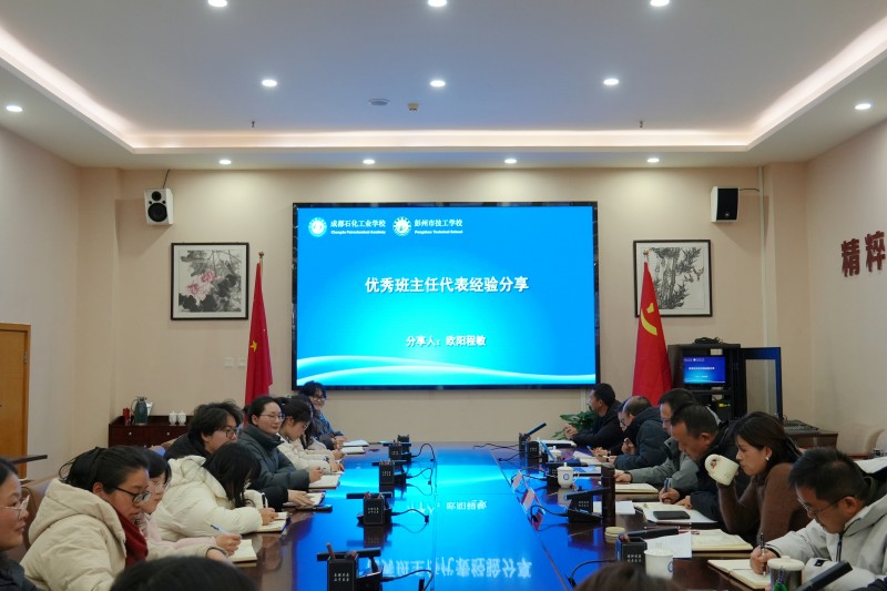 近日,为总结新聘班主任工作成效、破解班级管理难题、凝聚育人共识,成都石化工业学校(彭州市技工学校)“融合·赋能·致远”新聘班主任工作座谈会在南校区第四会议室召开。学校党委书记周川益,党委副书记、校长张昌波及分管校级领导、政教处及教务处负责同志,各专业科德育教学副科长,新聘班主任及优秀班主任代表齐聚,共话班级管理与德育发展。