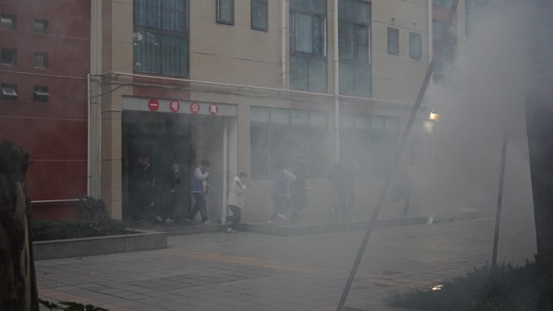 第二阶段为应急疏散演练。演练警报准时响起,各宿舍管理员迅速到位,引导学生用湿毛巾捂住口鼻,弯腰低姿,按照预设疏散路线快速、有序地向操场安全区域撤离。整个过程中,学生们听从指挥、不慌不乱,无拥挤、推搡现象。仅用时3分10秒,全体住校生便全部安全疏散至指定地点,各班级迅速清点人数并向演练总指挥汇报,演练达到预期效果。