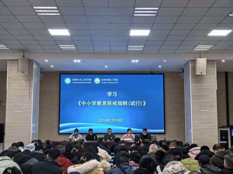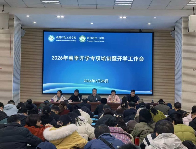 春风启序,万象更新;职教扬帆,匠心筑梦。为确保2026年春季学期平稳、和谐、安全、有序开学,成都石化工业学校(彭州市技工学校)周密部署、精细筹备,2月28日上午9:00南北校区同步召开了2026年春季学期开学工作会 ,全体教职工以坚定的信念、饱满的热情投身于彭派职教事业,践行新时代责任担当,共同开启学校新学期高质量发展新篇章。