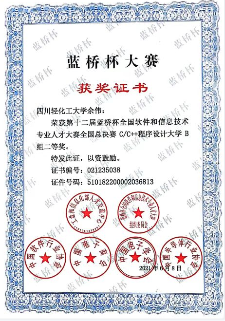 在四川轻化工大学里,余伟获得了多个奖项证书,而这每一份奖状的后面都少不了他在职业高中里学到的实干精神。他说:“职业高中由于定位与普通高中不同,这就要求了学生需要有着一定的专业能力,脚踏实地地认真学习,细心打磨,才能符合升学就业的标准。正是这种经历使我在大学中虚心学习,脚踏实地,不好高骛远。”