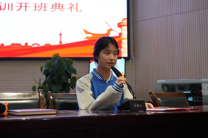 2024级幼儿保育3班刘妙可和2024级数控3班姚谨顺代表学员发言,承诺:“严格遵守纪律,认真听讲、积极实践,用行动证明‘青春的模样’,不辜负学校的期待!”