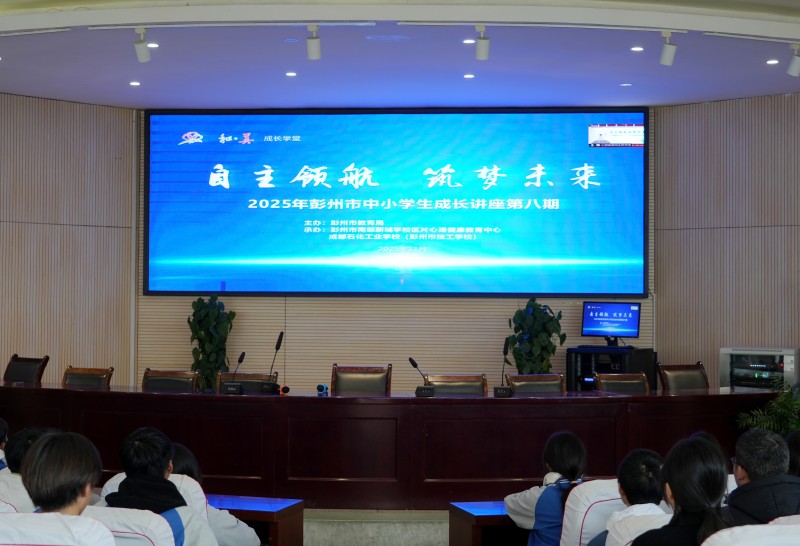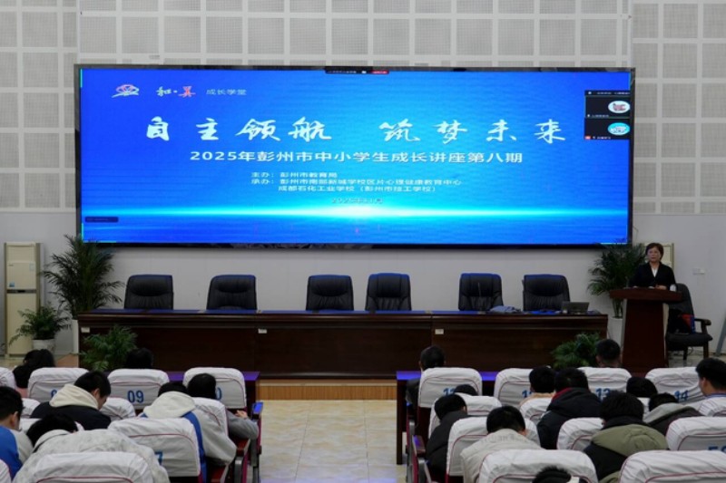 11月20日,由彭州市教育局主办,彭州市南部新城学校区片中心、成都石化工业学校(彭州市技工学校)联合承办的“自主领航.筑梦未来”主题生涯规划讲座顺利举行。本次讲座聚焦青少年生涯规划核心议题,特邀专家刘立频担任主讲嘉宾,吸引了教育系统教师代表、家长代表及学生代表共百余人现场参与。