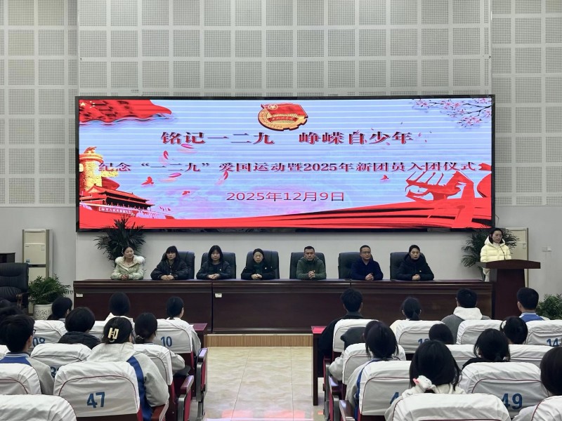 为纪念“一二·九”运动九十周年,弘扬伟大爱国主义精神,引领广大青年坚定理想信念,矢志不渝跟党走,成都石化工业学校(彭州市技工学校)于近日分南、北校区举行纪念“一二·九”运动暨新团员入团宣誓仪式。活动现场庄严热烈,114名新团员在师长的见证下,光荣加入中国共产主义青年团。
