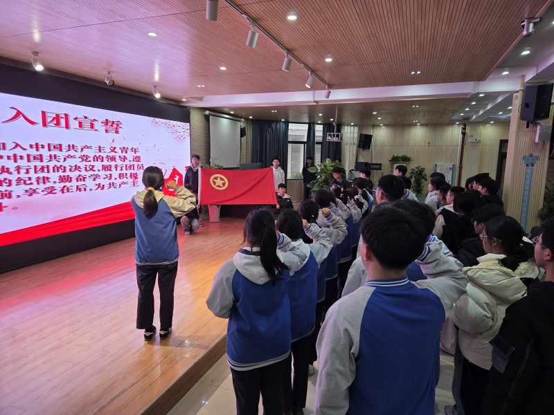 最后,在24级计算机应用3班王雅昕、2024级数控技术应用3班苟文杰的领誓下,全体新团员面向鲜艳的团旗,高举右拳,庄严宣誓,铿锵有力的誓言,字字千钧,响彻会场,表达了新团员们为共产主义事业贡献青春力量的坚定决心。