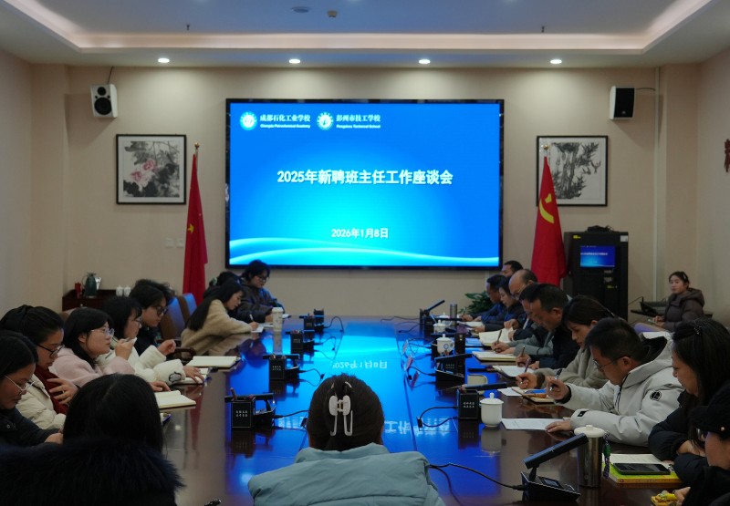 近日,为总结新聘班主任工作成效、破解班级管理难题、凝聚育人共识,成都石化工业学校(彭州市技工学校)“融合·赋能·致远”新聘班主任工作座谈会在南校区第四会议室召开。学校党委书记周川益,党委副书记、校长张昌波及分管校级领导、政教处及教务处负责同志,各专业科德育教学副科长,新聘班主任及优秀班主任代表齐聚,共话班级管理与德育发展。