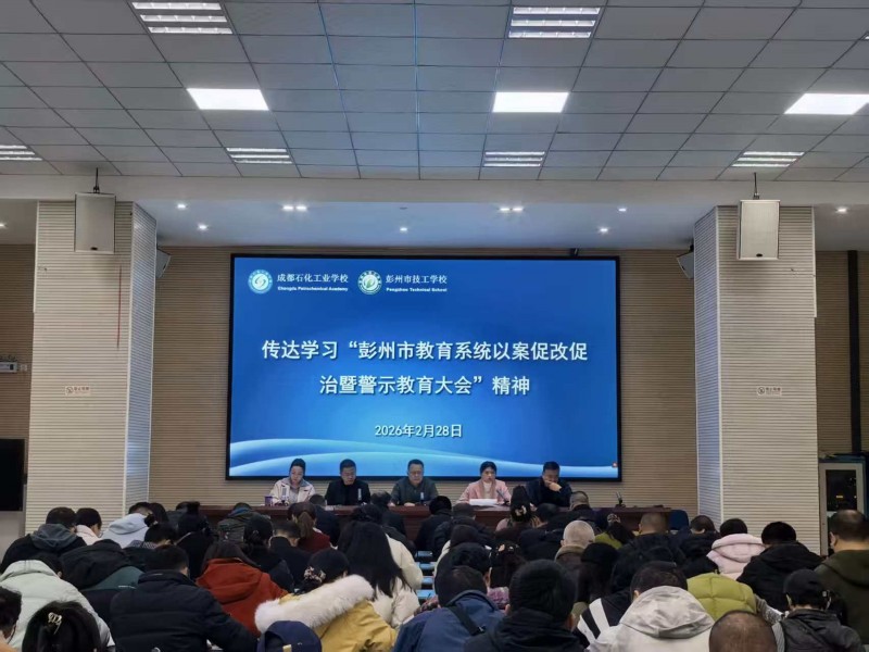 春风启序,万象更新;职教扬帆,匠心筑梦。为确保2026年春季学期平稳、和谐、安全、有序开学,成都石化工业学校(彭州市技工学校)周密部署、精细筹备,2月28日上午9:00南北校区同步召开了2026年春季学期开学工作会 ,全体教职工以坚定的信念、饱满的热情投身于彭派职教事业,践行新时代责任担当,共同开启学校新学期高质量发展新篇章。