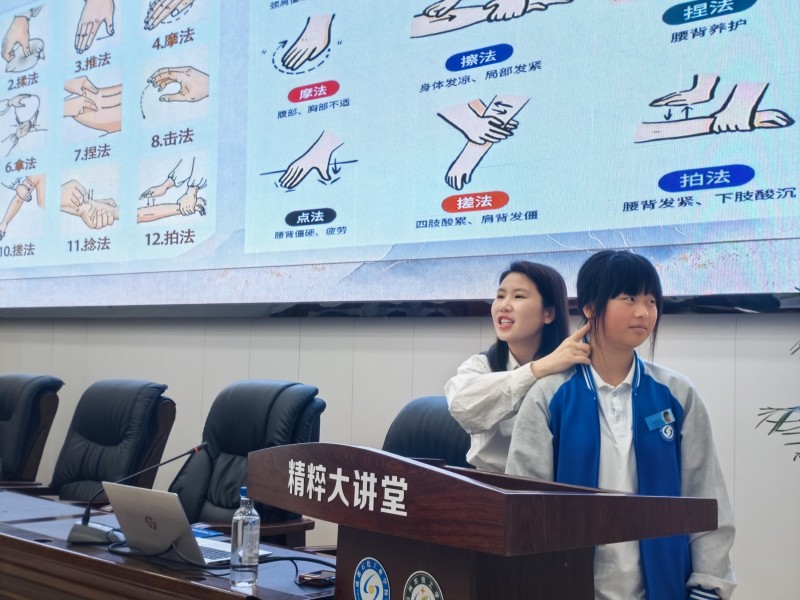 课堂上,同学们认真学习中医香疗核心知识,规范练习八段锦招式,沉浸式体验中医药文化魅力,在动手实践中感受传统医学的博大精深。